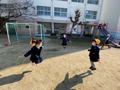 1年生の子どもたちは、なわとびが上手になって嬉しそうです。