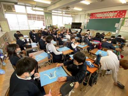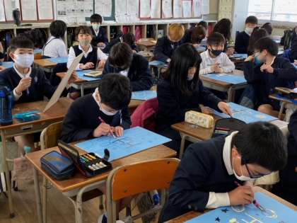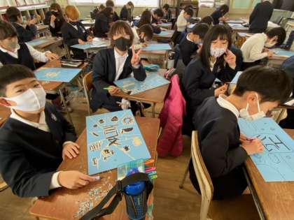 図工科で、版画をしています。木版に書いた文字を、彫刻刀を使って彫っています。どんな仕上がりになるのか楽しみです。