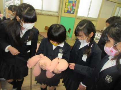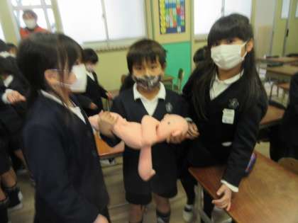 授業の最後は、赤ちゃんを抱っこしたり胎児人形を見たり…