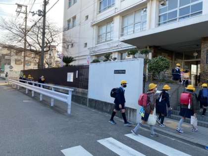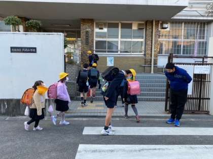 今朝も、地域の方や教職員に見守られて、子どもたちが