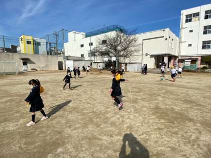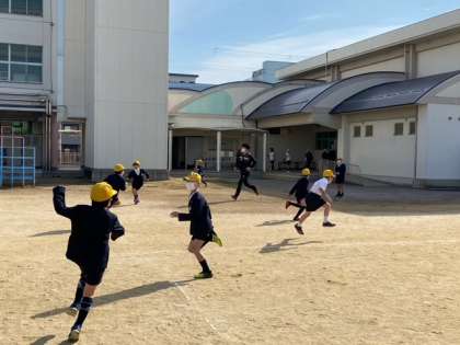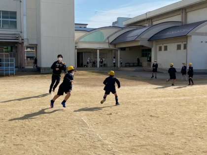 運動場では、SSS(スクールサポートスタッフ)の大学生が子どもたちと一緒に鬼ごっこをして走っていました。