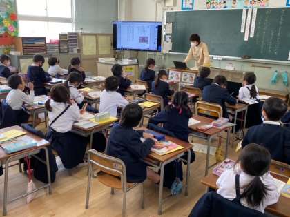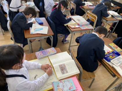 国語科で「子どもをまもるどうぶつたち」の学習です。コチドリが、子どもをまもるためにどんな「ちえ」を使うのか、読み取った内容をワークシートに書いていました。