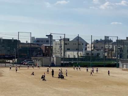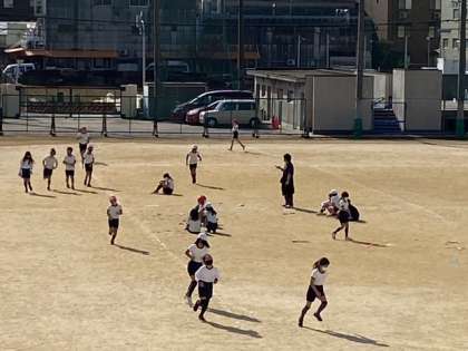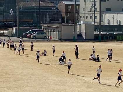 運動場で、持久走をしました。今日は、走るのにいいコンディションです。ファイト!