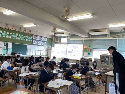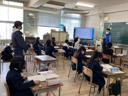 算数科の少人数授業です。3つの教室に分かれて「三角形を調べよう」の学習をしました。