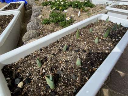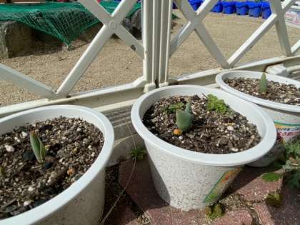 「人権の花」運動の取り組み(10月28日紹介)で、3年生の児童が植えてくれたチューリップの球根が、すくすく育っています。3月を待たずに、きれいな花を咲かせてくれるかもしれませんね。