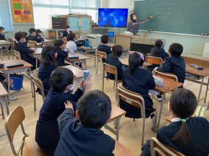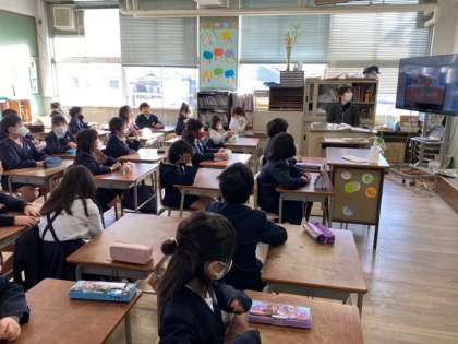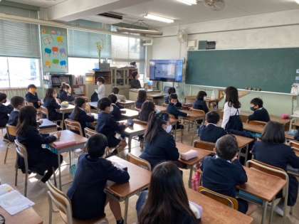 2年生の教室では、アルファベットや英単語の発音をしていました。