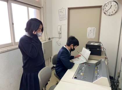 給食委員会の児童が、献立の放送をしています。今日は、「泉だこのやわらかに」がでました。