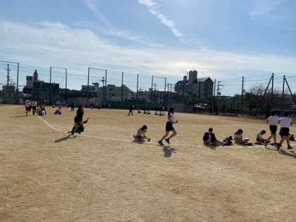 体育科の持久走です。10分間でトラックを何周走ることができたでしょうか。担任の先生や待機している子どもたちから「ペースを考えて」「がんばれ」と、さかんに声がかかっていました。