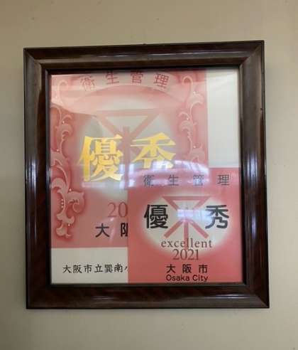 これは、大阪市の環境衛生・食品衛生関係施設の中で、特に衛生状態の保持や危機管理に優れおり、信頼される施設に対して大阪市から交付されるものです。