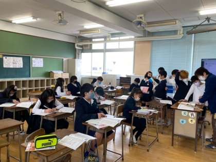 算数科の少人数授業です。SSSの大学生が学習補助に入っています。子どもたちは、積極的に先生に質問しています。