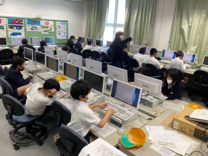 4年生の学習(1組の図工科、2組の国語科(パソコン室))のようすです。