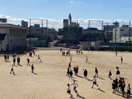 運動場に子どもたちの姿が戻ってきました。元気いっぱいに駆け回っています。