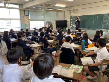 1組の算数科の少人数授業です。「直方体と立方体」について2つの教室に分かれて学習しました。面の形に注目して仲間分けをしました。