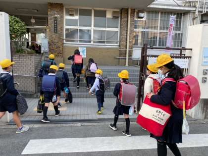 子どもたちが、「おはようございます」と元気にあいさつをして登校してきました。