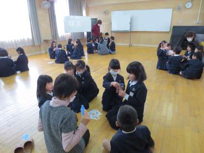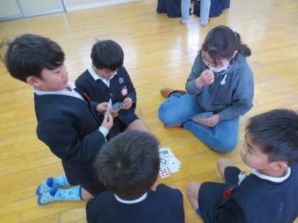 地域の方々が20分休憩の時に、子どもたちと遊びを通して、ふれあいを深めていただいております。