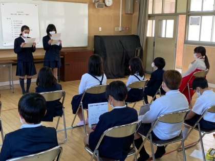 5年生から6年生へのメッセージ(お祝いとお礼)と、6年生から在校生へのメッセージです。自ら考えた内容をしっかり言葉で伝えていました。