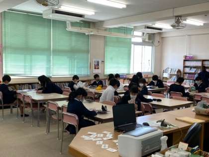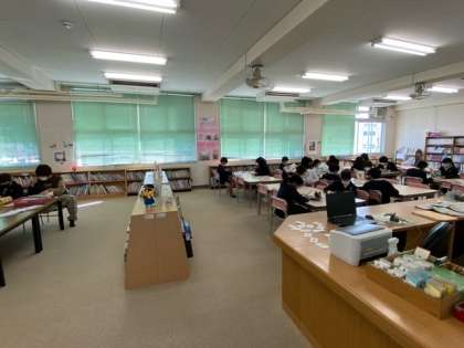 2組は図書館での読書の時間です。心を落ち着けて本を読んでいます。