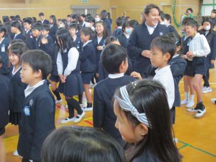 船長さんのめいれい・・・村長さんのめいれい・・・○○さんのめいれいと動作を求められ、どの児童も笑顔がいっぱいでていました。
