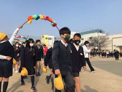 大きな「花のアーチ」をくぐってから教室に戻っていきます。