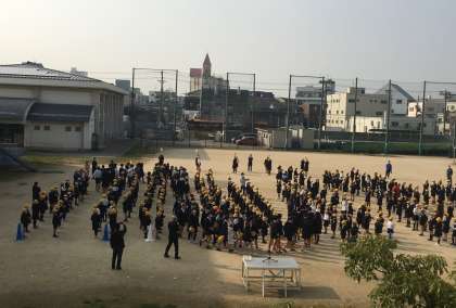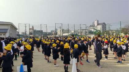 卒業を祝う会もオンラインで開催したので 今日の最後の朝会は、母校を巣立つ6年生を全校児童で祝福し拍手で送りました。