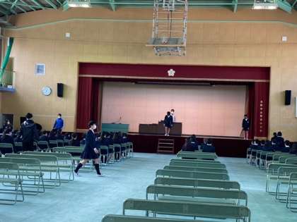 写真は、証書授与の練習です。「はい」と返事もしっかりできています。細かいところを確認して当日に臨みます。