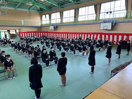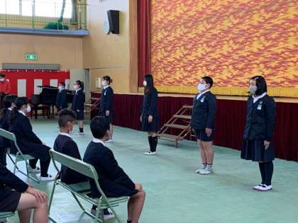 式が終了し、在校生代表があいさつをします。