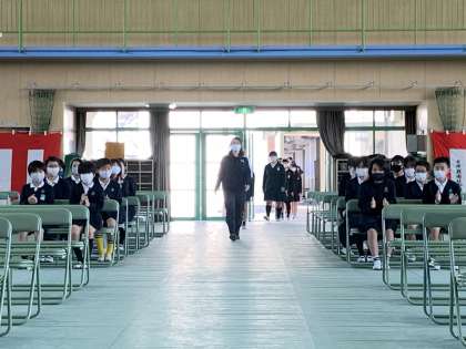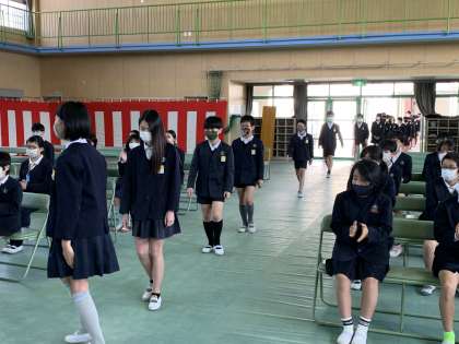 定刻の午前10時、6年生が入場します。