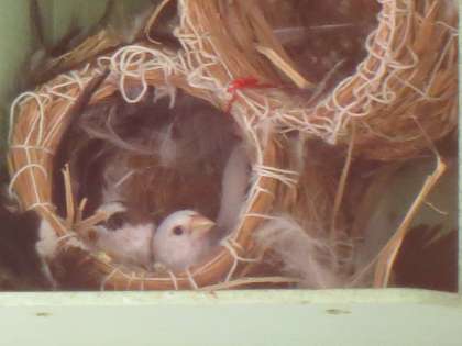十姉妹は、暗くなると巣に入り、みんなで寄り添って寝ています。