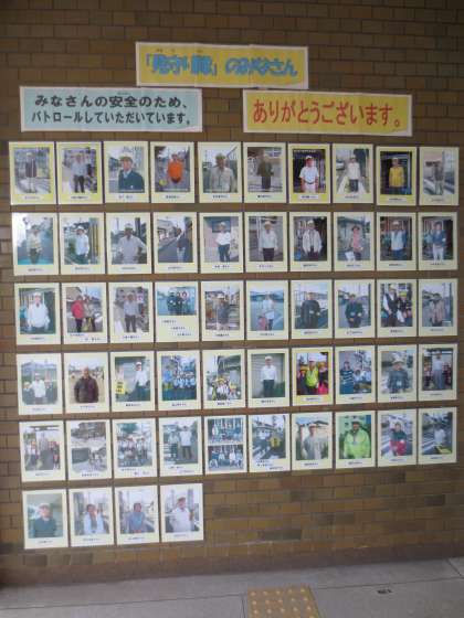 「見守り隊」の方々のお写真を学校の玄関に掲示しています。「見守り隊」の方々は、子どもたちの安全な下校のため、寒い日も雨の日も暑い日も、毎日立っていただいております。