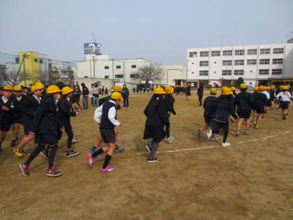 運動場に避難後、津波に対しての二次避難を実施しました。校舎三階以上に全児童が避難します。この避難訓練も注意をよく守り、子どもたちは安全に素早く行動できていました。校舎三階以上への避難時間は、3分58秒でした。