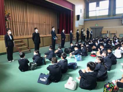 校長先生から、新しい担任の先生の発表がありました。「ワクワクドキドキ」の瞬間です。静かに発表を聞くことができました。