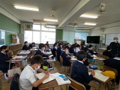 地理・歴史・公民と、幅広い分野を、中学校ではより専門的に学習します。今日は「人類の起こり」について学習しました。