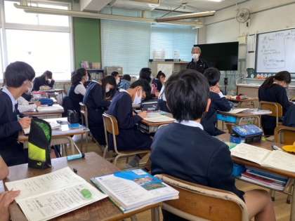 6年生1組の社会科の授業です。6年生の社会科は、今年度、専科で行います。