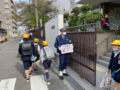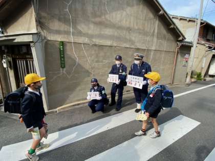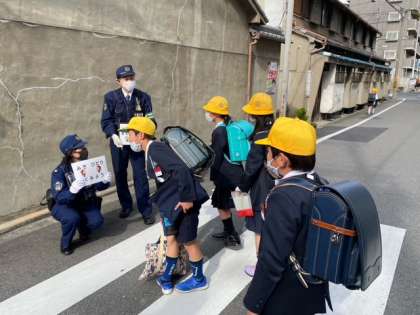下校時に、生野警察署生活安全課の「おまわりさん」に来てもらい、交通安全指導をしました。