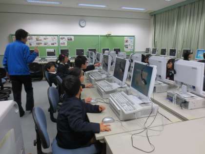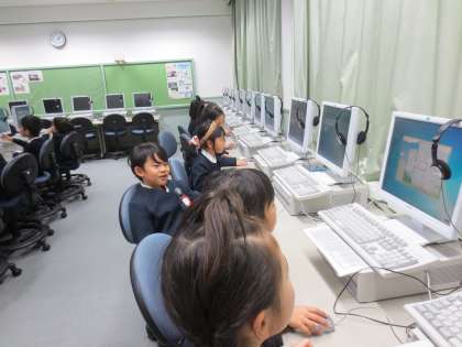 1組はパソコンルームで学習をしていました。まだ慣れていませんが・・・楽しくマウスを操作していました。