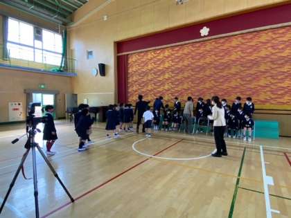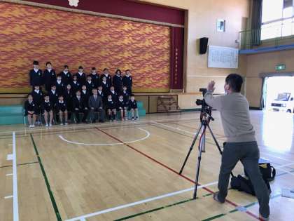 姿勢よくきちんと並び、撮影の瞬間だけマスクをはずします。いい表情です。仕上がりが楽しみです。