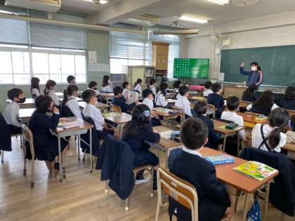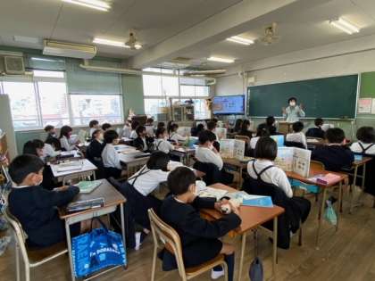 3年生1組の音楽科、2組の理科の学習のようすです。