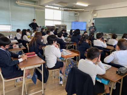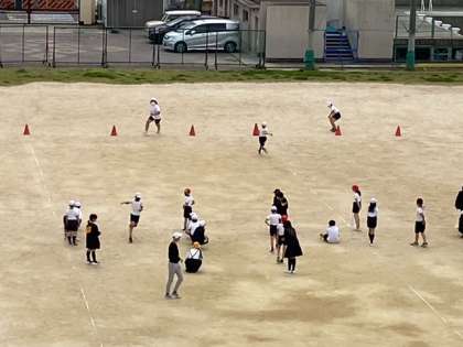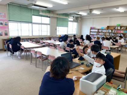 1組の国語科は図書館で読書の時間でした。2組の体育科と英語科の授業です。