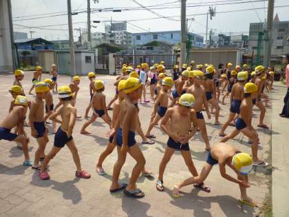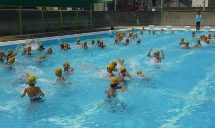今日は、夏休みのプール開放の最後日。12日間あった開放は、毎回、多くの児童が集まり、たくさん泳いだり、水遊びを楽しんだりしました。毎日参加し、真っ黒に日焼けした児童もいます。
