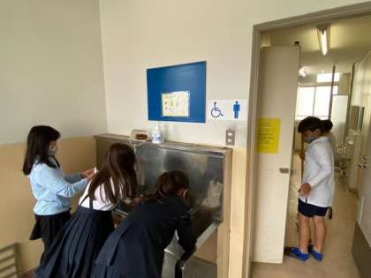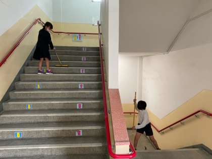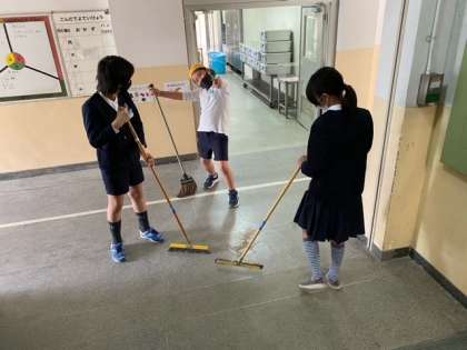 お昼の掃除の時間です。当番の児童が、協力して担当場所をきれいにしてくれています。みんなで自分たちの学校を美しくしましょう。