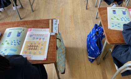 2組の算数科で「おおいのは どちらかな」です。「なかまづくりとかず」について学習していきます。