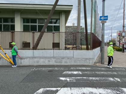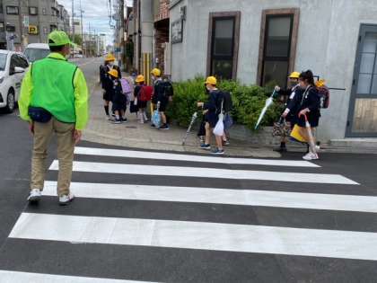 通学路では、日々、地域の「見守り隊」の方々が、子どもたちの交通安全を見守り、声かけをしてくれています。
