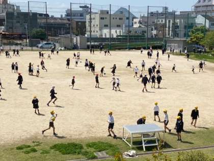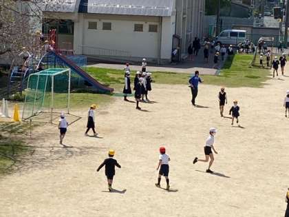 運動場では、元気な子どもたちの姿が見られました。楽しそうに走りまわっています。