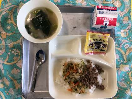 ビビンバ、トック、いり黒豆、ご飯、牛乳