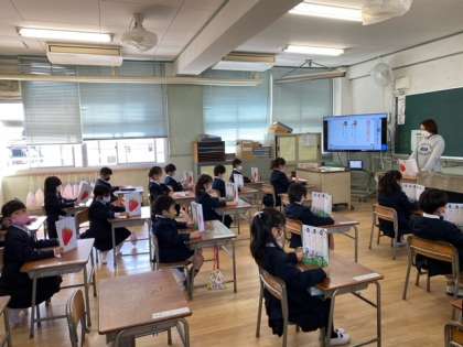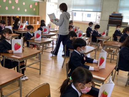 よい姿勢で、教科書の「あいうえおのうた」を音読していました。