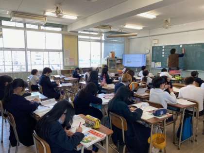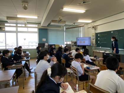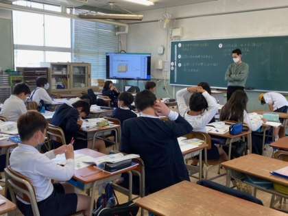 5年生の、2学級を3つに分けた算数科の少人数授業のようすです。