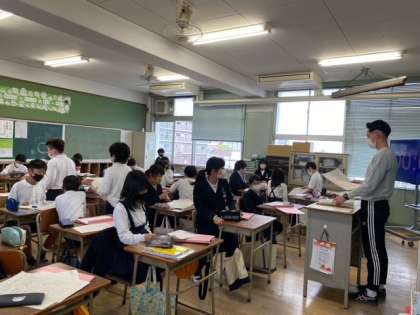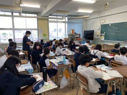 1組の社会科は、日本の国土の特色について考えました。日本の島々や周りをとりまく海を地図で確認しました。