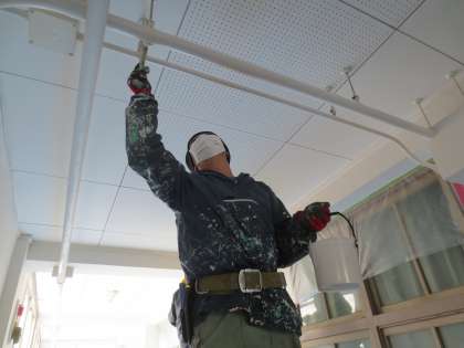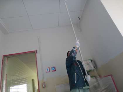 3/5 6年教室前 廊下の壁を美しく(2)