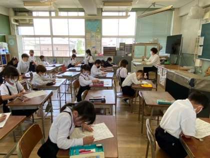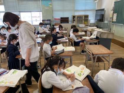 2組の国語科では、教科書の「たんぽぽ」を読んで感想を書いていました。