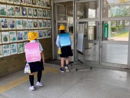 1・2限に家庭学習をしていた子どもたちが、登校してきました。